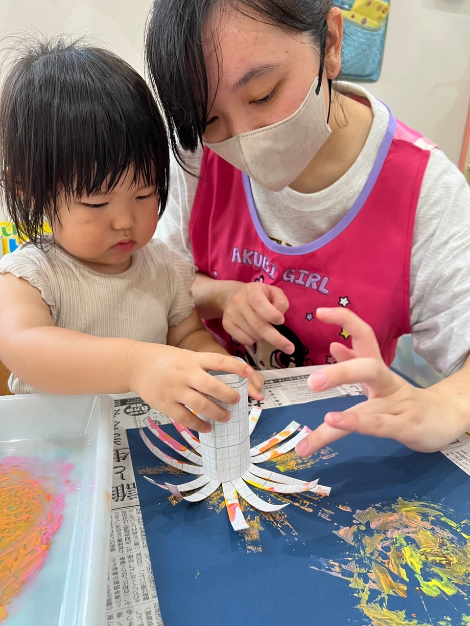 10時からは、活動に合わせて、玩具や制作の準備をして、子どもたちと一緒に遊びます。
