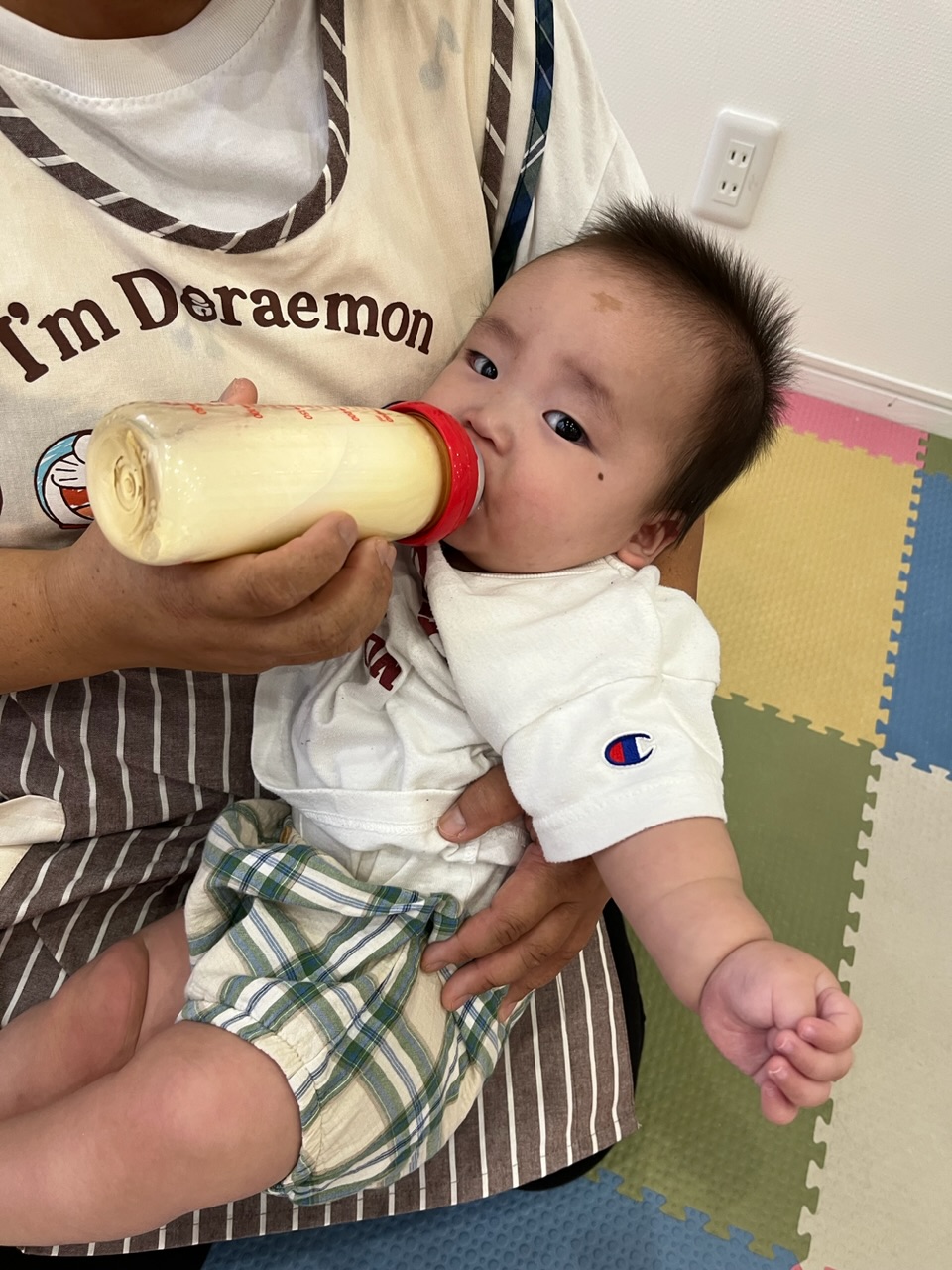 まだ給食が始まっていない子どもは、子どもたち一人ひとりの時間に合わせてミルクを飲みます🍼
