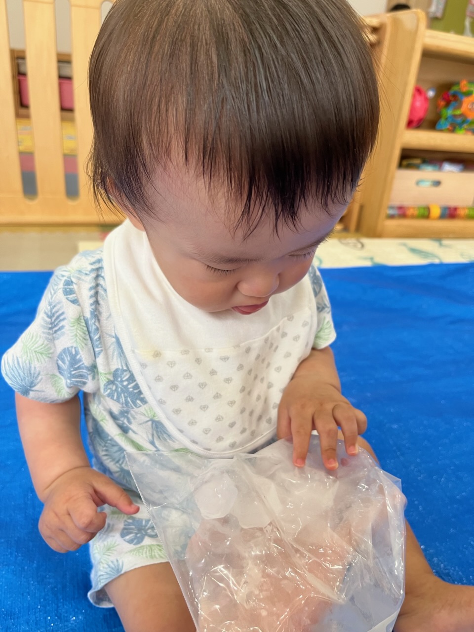 7/25(火)は、氷を使って感触あそびを行いました🧊