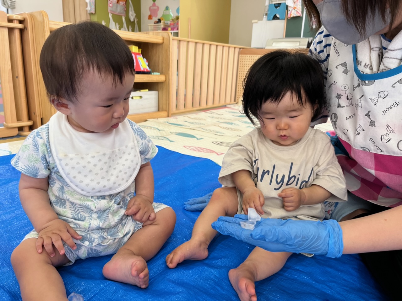 ひんやり冷たい氷遊び🧊(0歳児🦦)