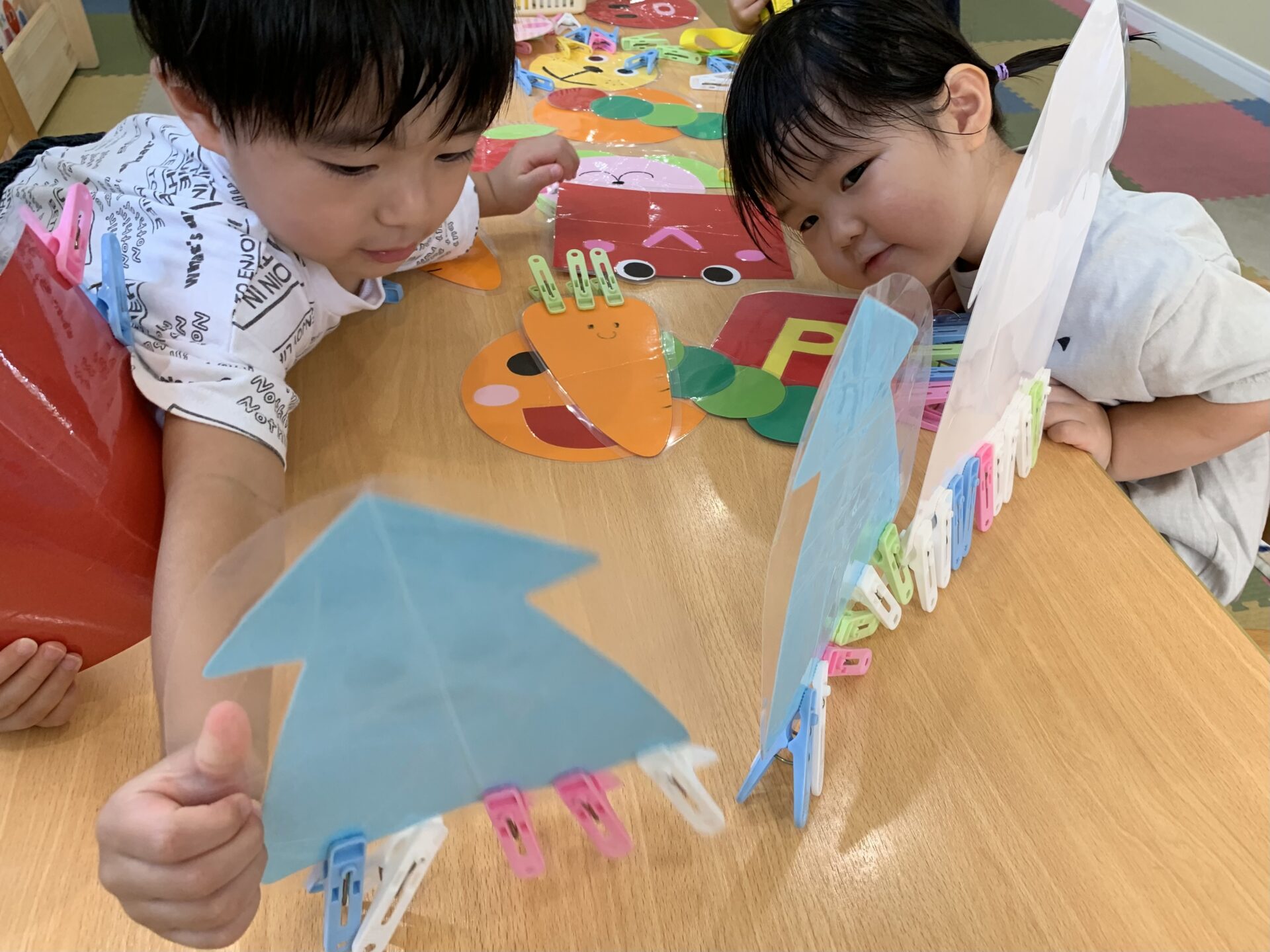 お絵描きやフラワーブロックなど様々な遊びをした中でも、特に洗濯バサミ玩具が盛り上がりました✨