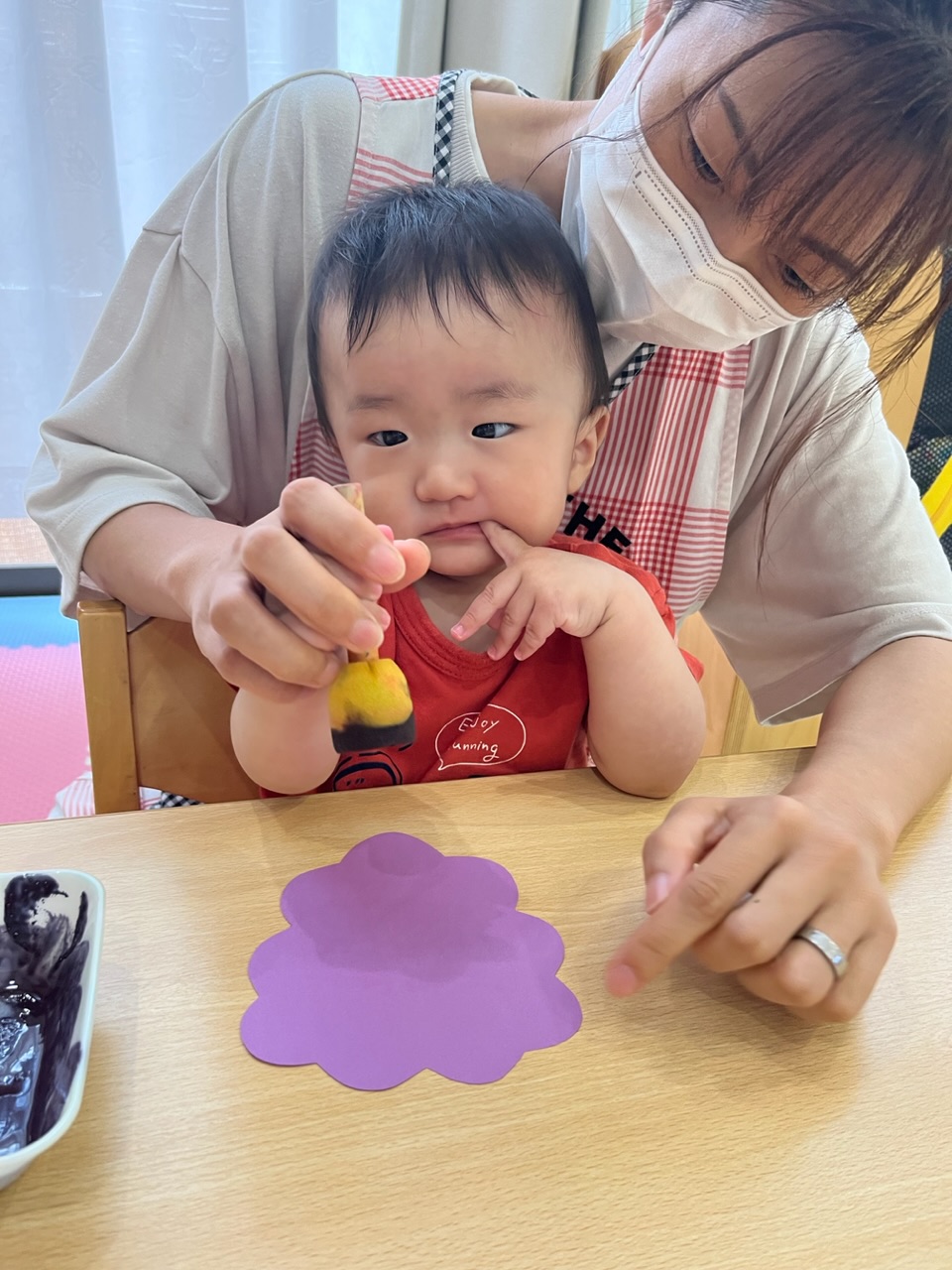ポンポン🎵楽しいぶどうの制作🍇(0歳児🦦)