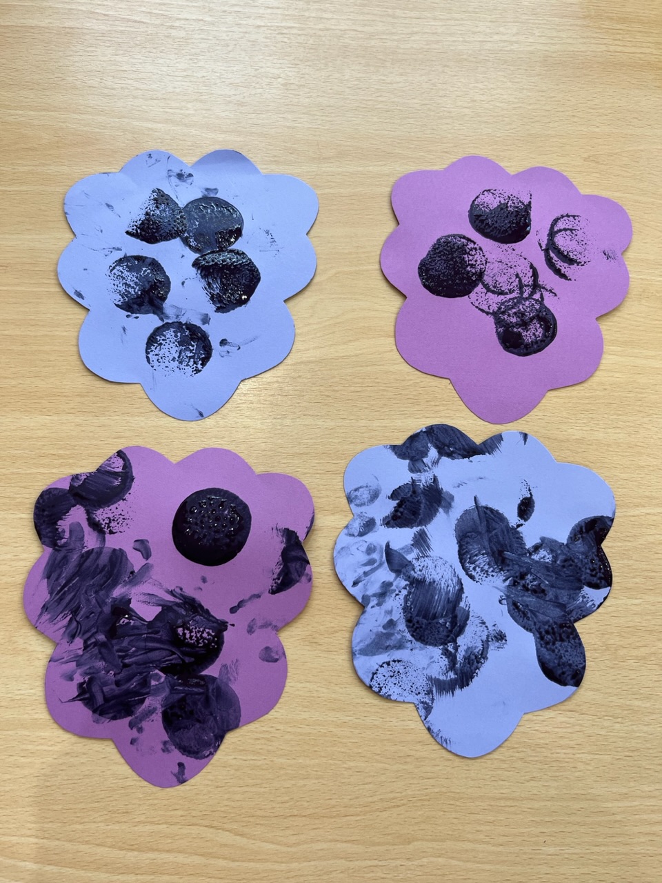 先週は、タンポを使ってぶどうの制作を行いました。