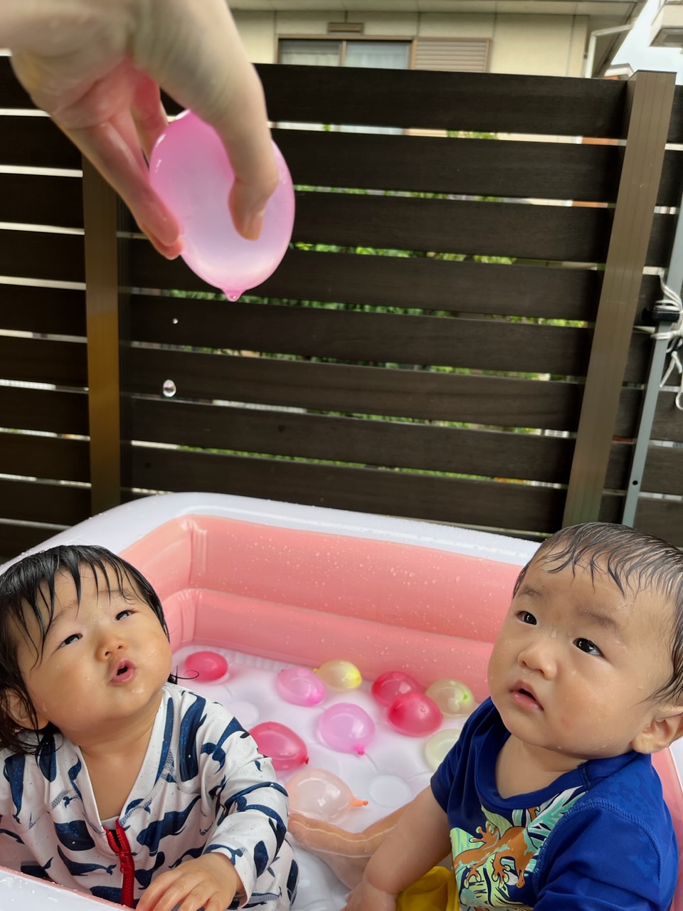先週は、初めて水風船を使って遊びました。