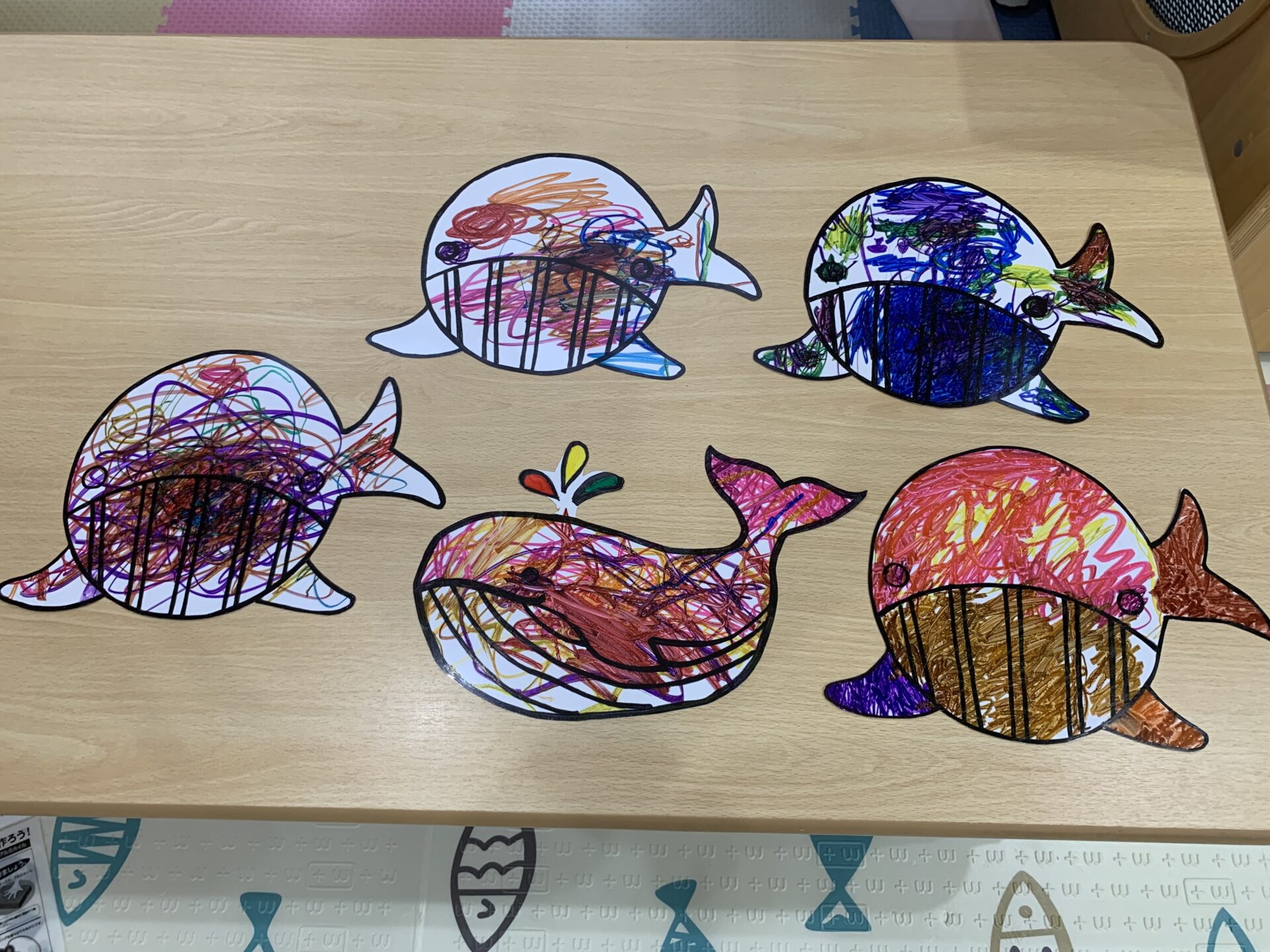 そして、一人ひとりの個性がよく出た、素敵なくじらの絵が完成しました🐳🌈