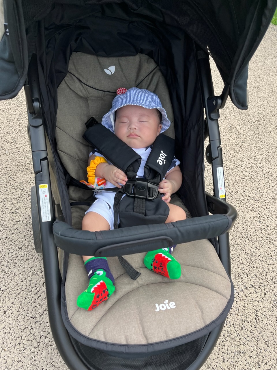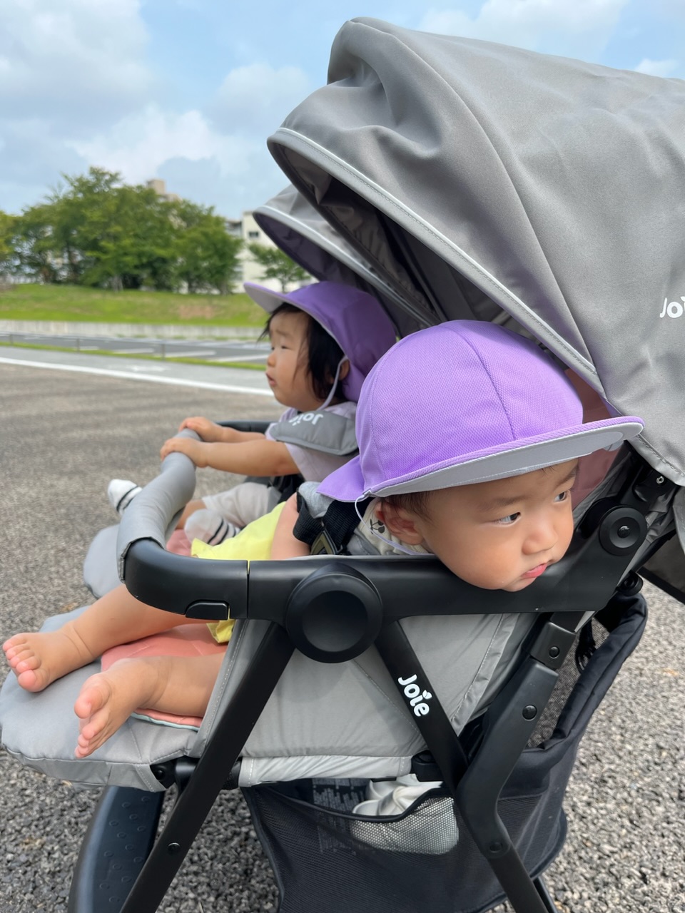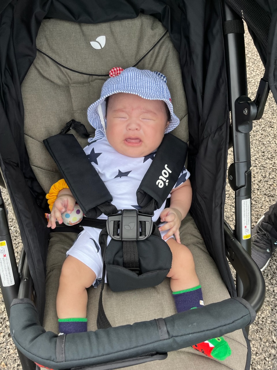 入園して初めてお散歩へ行く子どもは、ベビーカーが動き始めるまで泣いてましたが、出発するとご機嫌になっていました💖