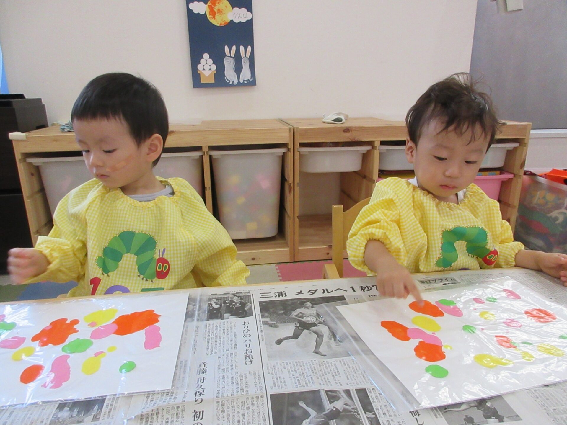 ついていないのを不思議そうな顔で見たり、ほっとした表情で、ダイナミックに絵の具をのばして、楽しむことができました。