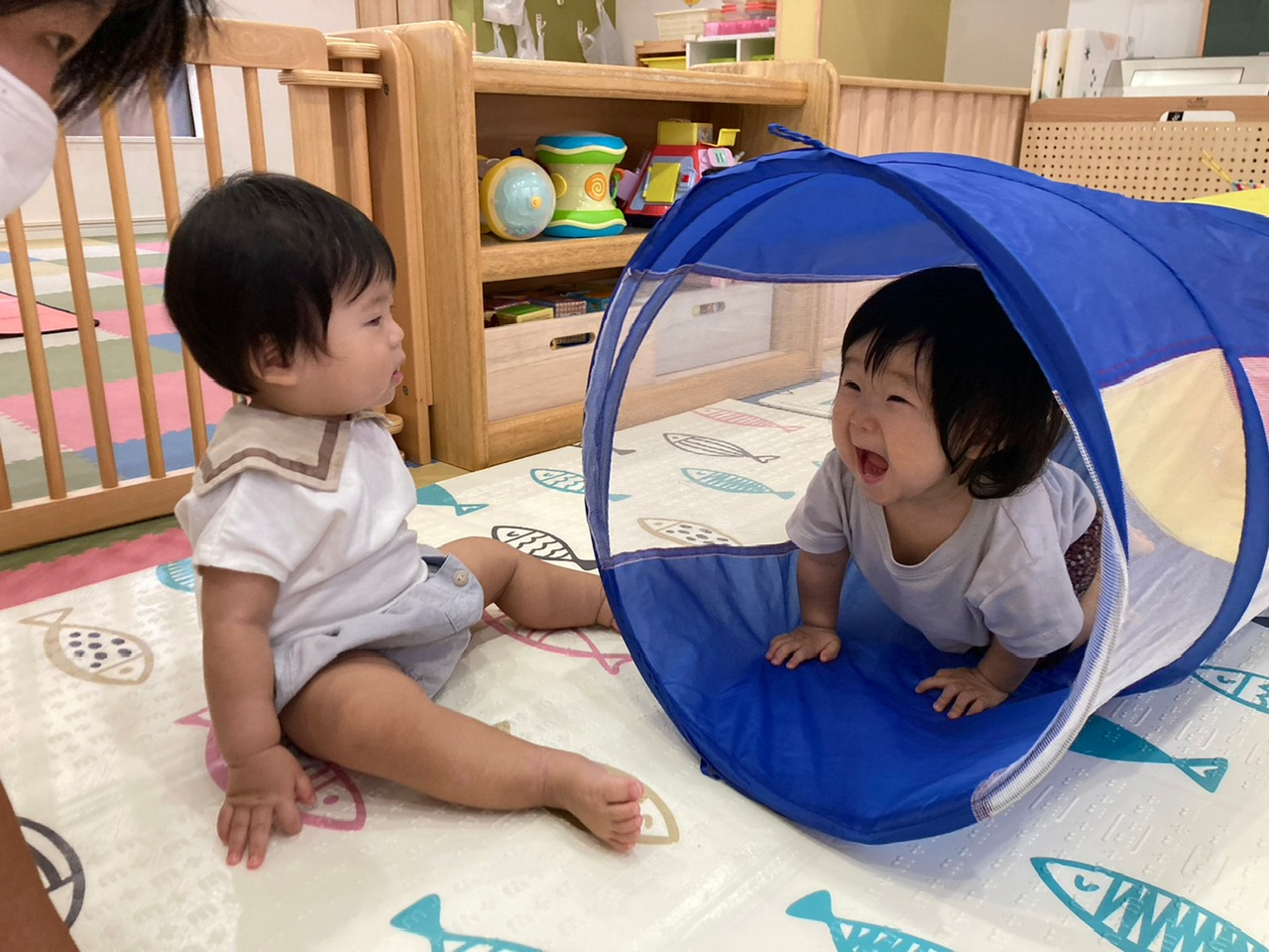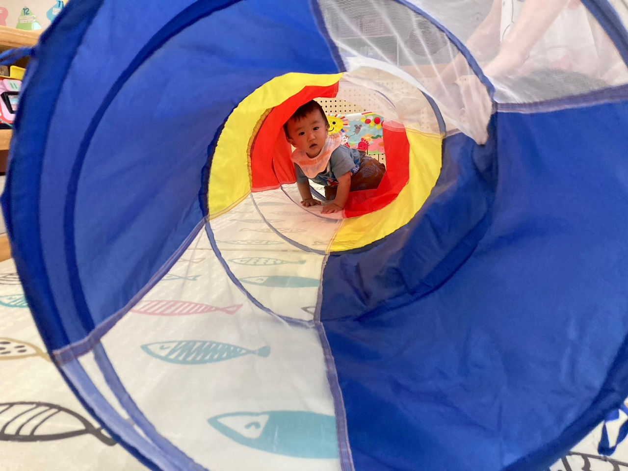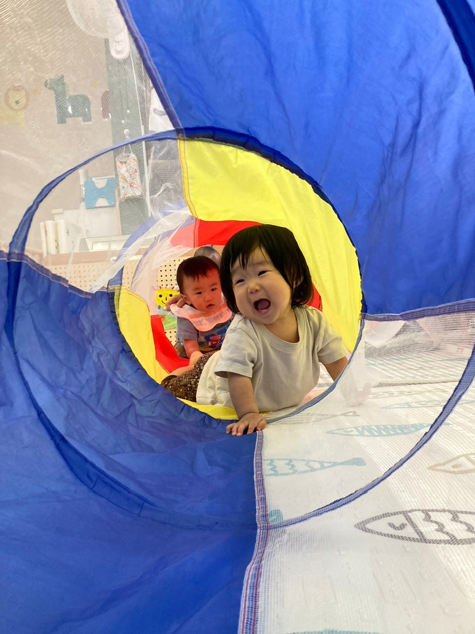 お友だちの遊んでいる様子を見ているうちに、一緒にトンネルに入って遊ぶことができました👏