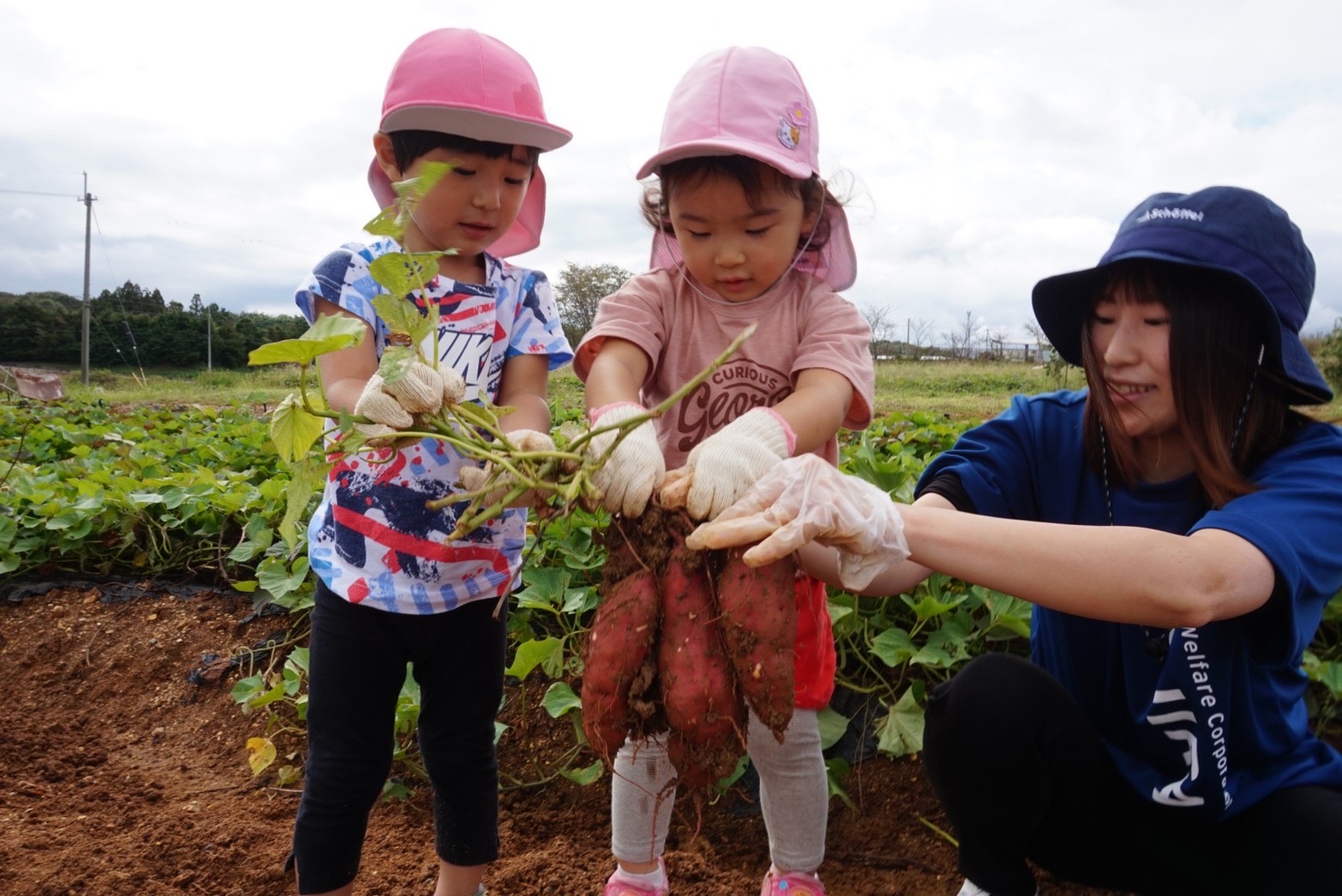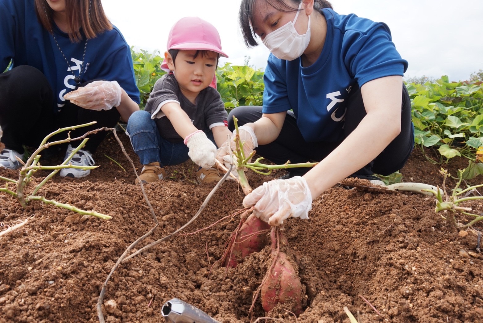 また、みんなで協力して土を掘り、お芋の全体が見えてくると、友だちや保育者と一緒に力強くお芋の根っこを引っ張ります🤛✨