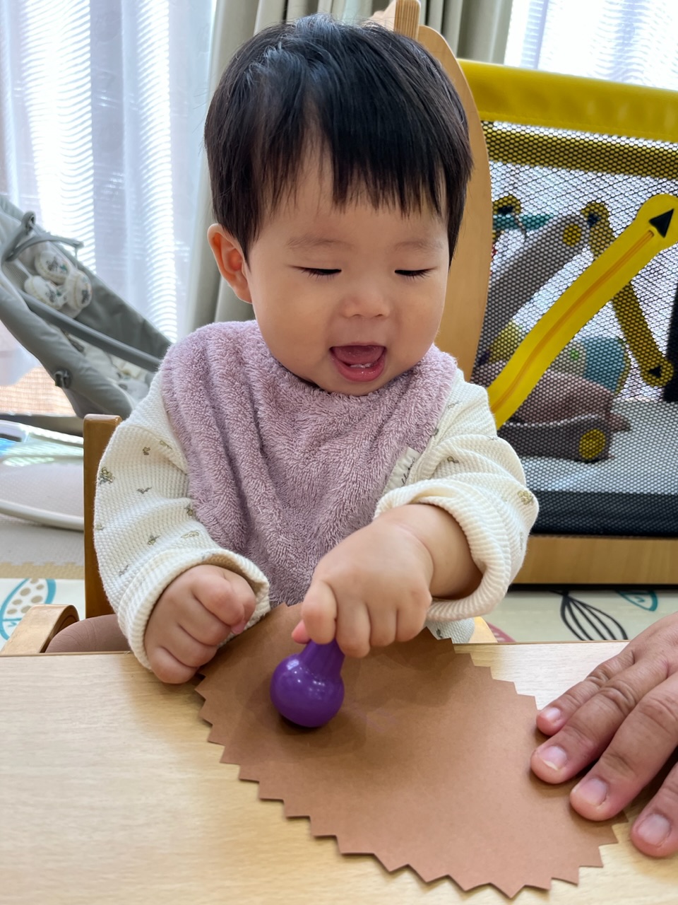 また、低月齢児は、ベビークレヨンの代わりにスタンプ台を使用し、指スタンプで模様を付けました🖐🏻
