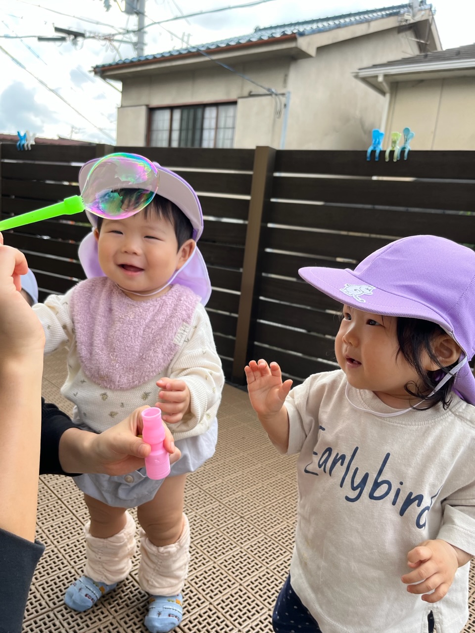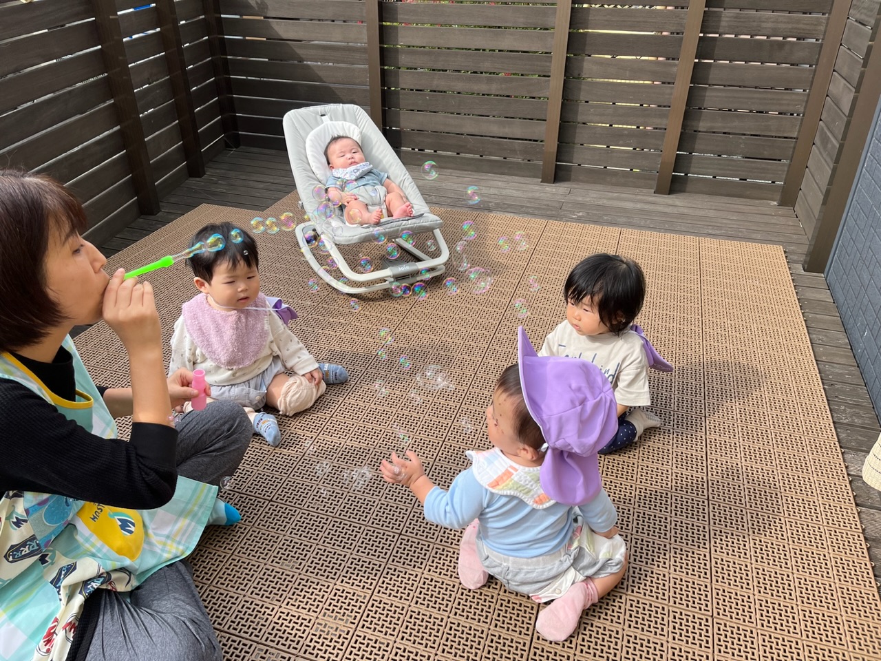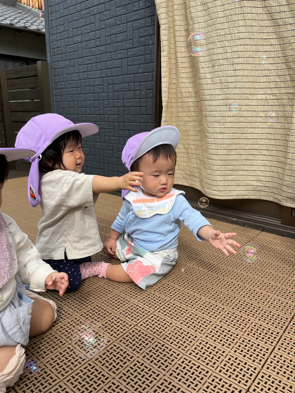 先週は、テラスでしゃぼん玉遊びをしました🫧