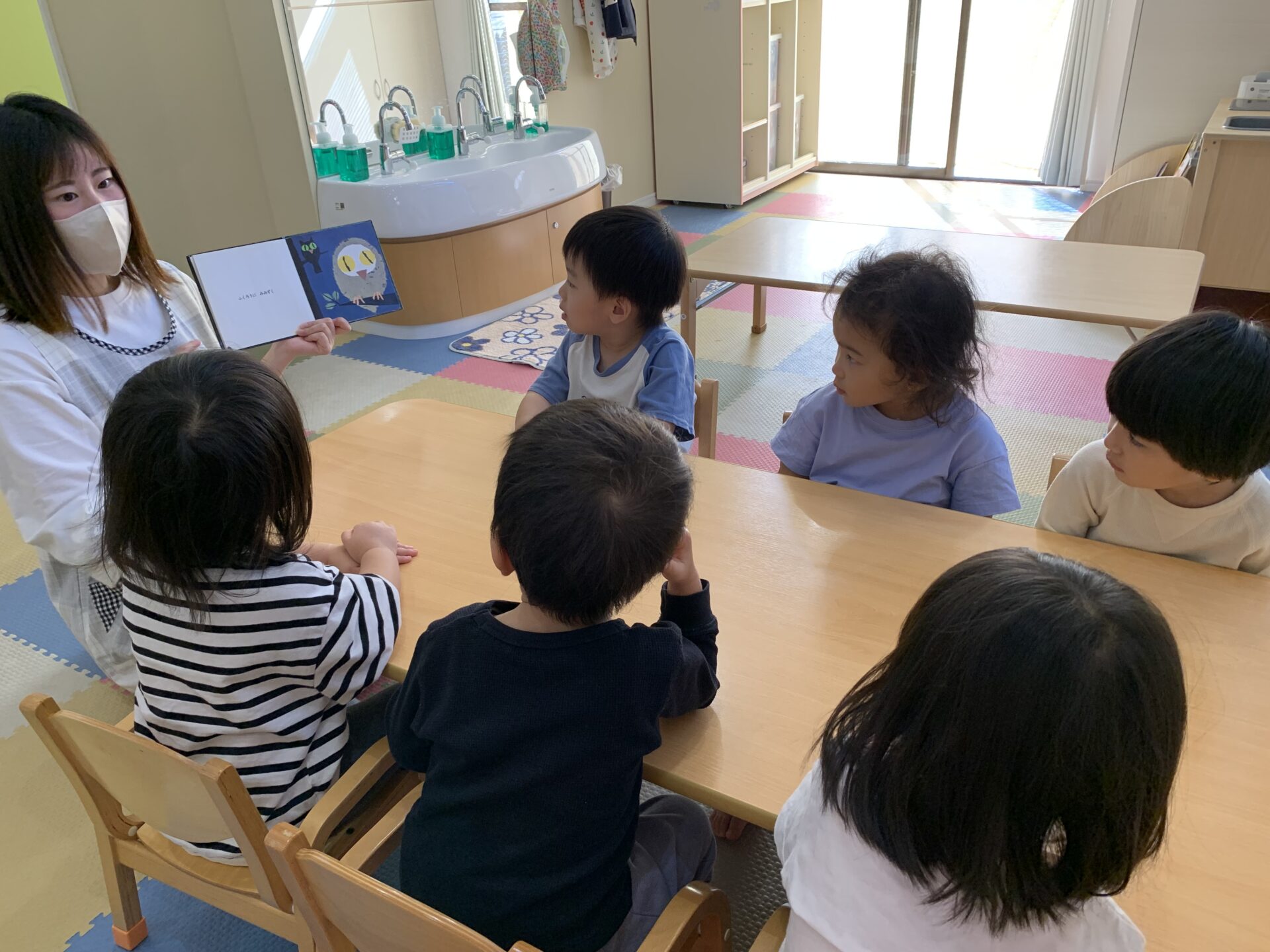 はじめに、「ねないこだれだ」の絵本に出てくるフクロウや写真のフクロウを見せると、バッチリと「フクロウ!!」と答えてくれた子どもたち✨