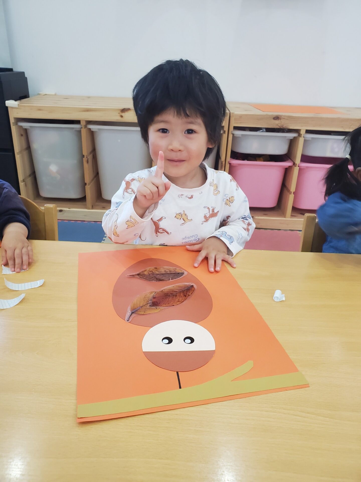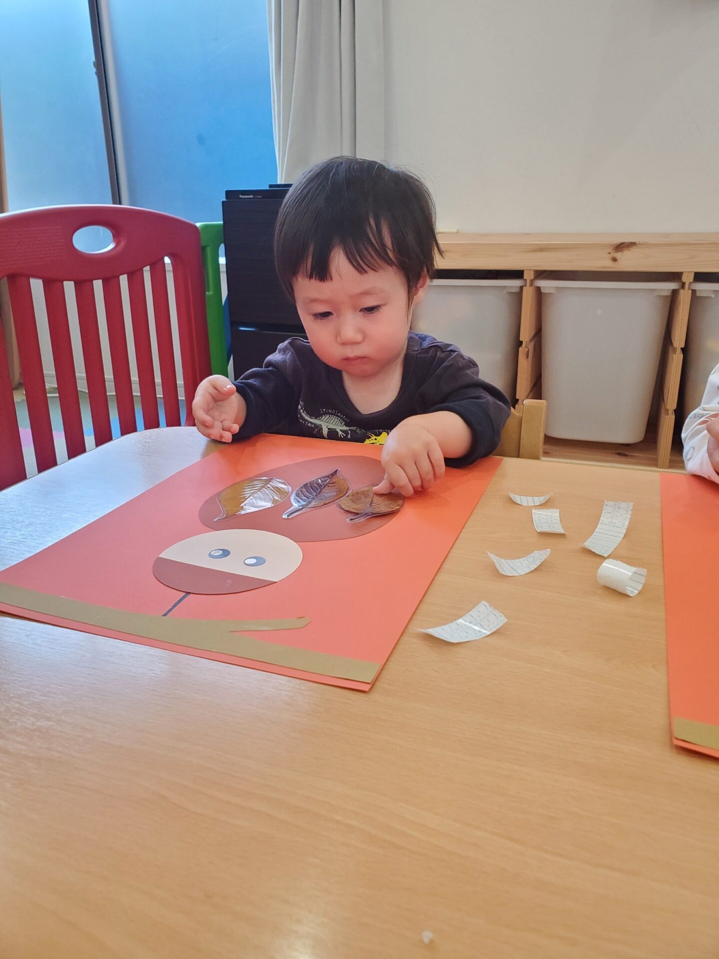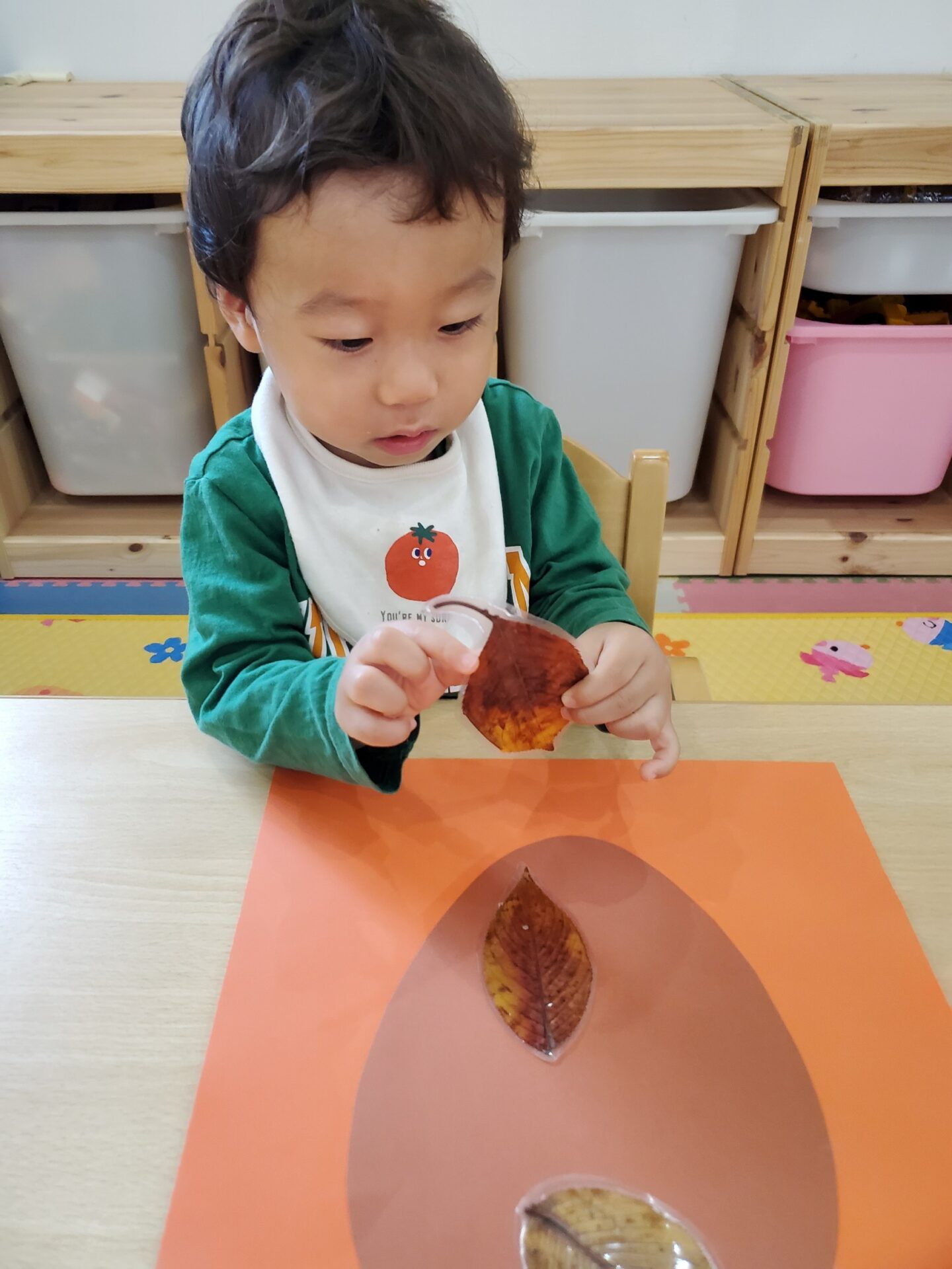 たくさんの葉を大胆に貼ったり、重ならないように並べて貼ったりと、工夫をして貼る姿が見られました❗