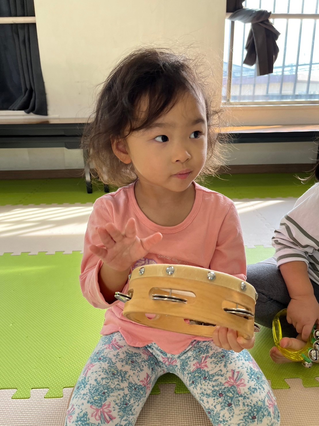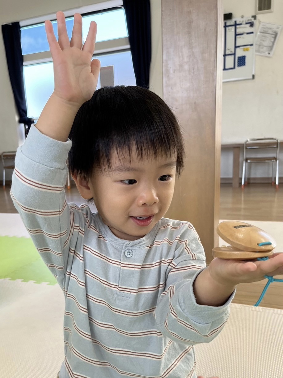 タンバリンやカスタネットでは、大きく叩く子どもや、優しく叩くたたく子どもなど、ひとりひとり音の出し方も違い、おもしろさがありました😆