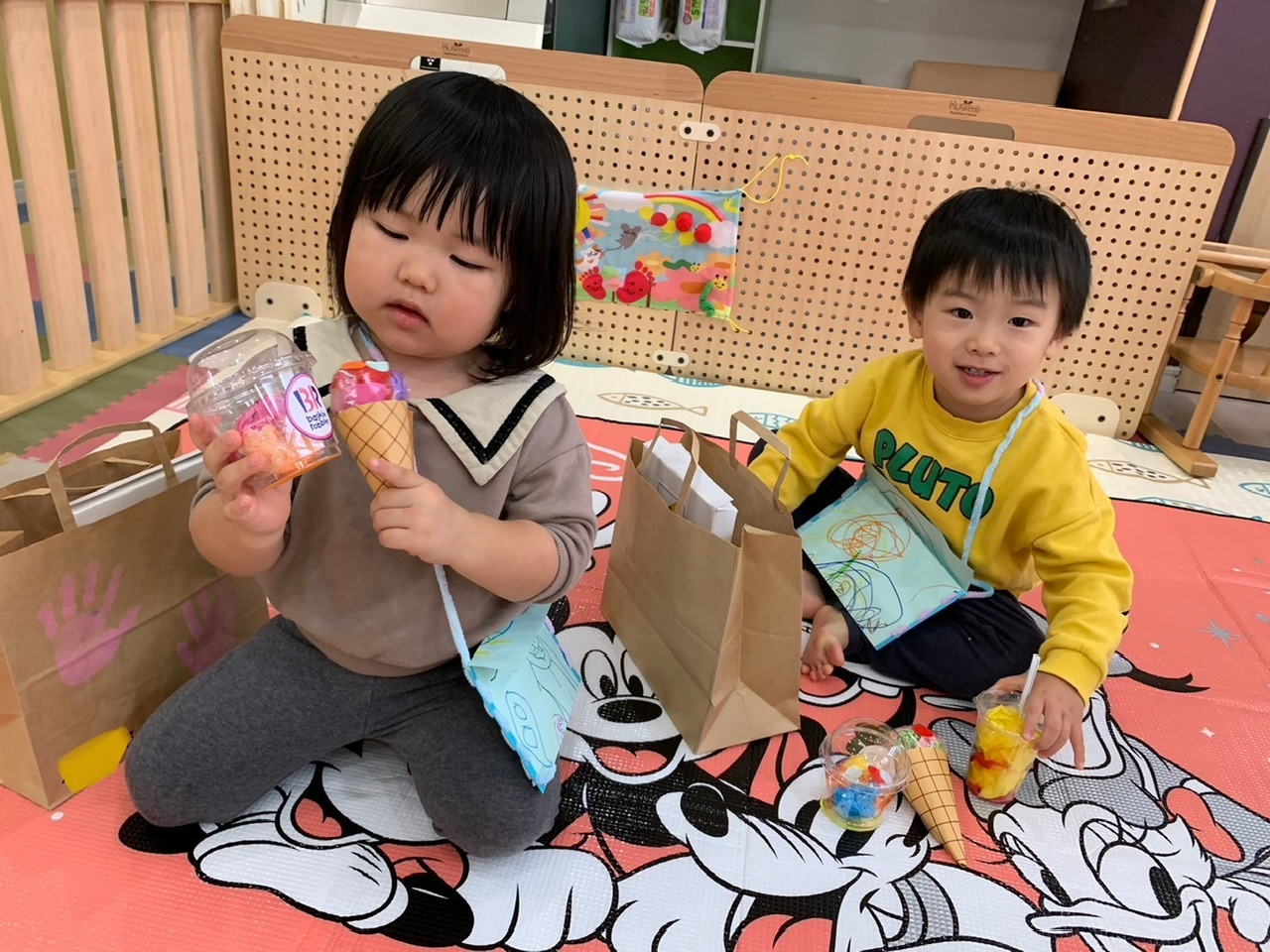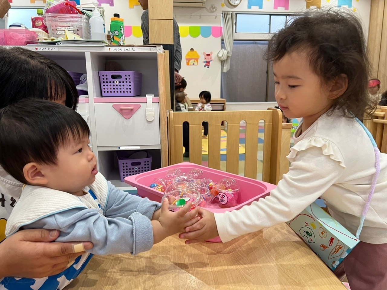 まだ1人でやりとりすることが難しい子どもたちも、保育者と一緒に受け渡しを行いながら頑張ることができました👏🏻