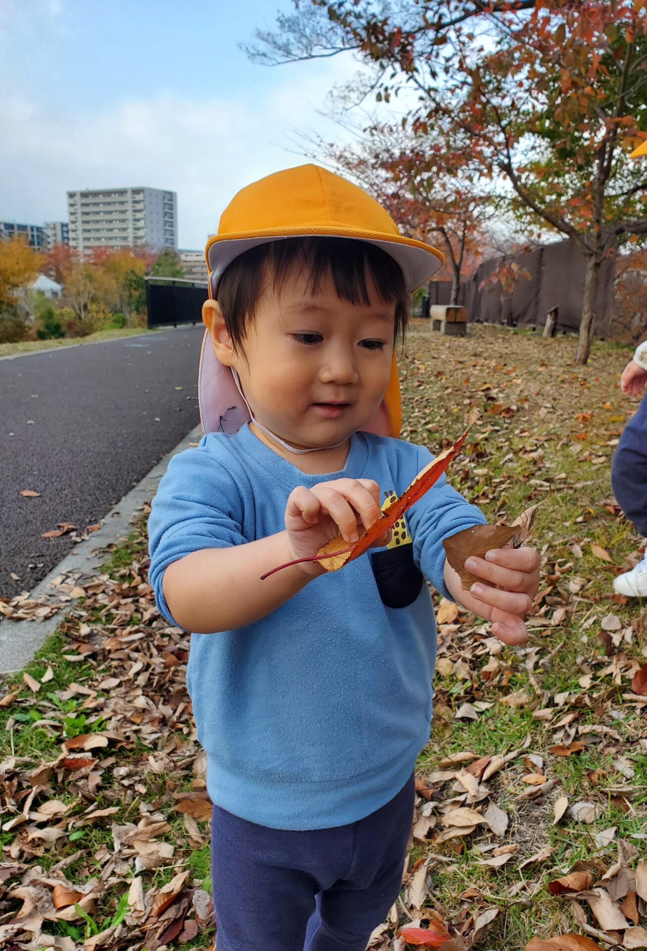 豪快に楽しもう❗落ち葉あそび🍂(1歳児🐬)