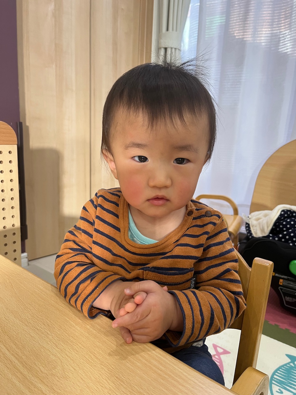 保育者がおやつの準備していると、素早く反応して、椅子に座りにきてくれます☺️
