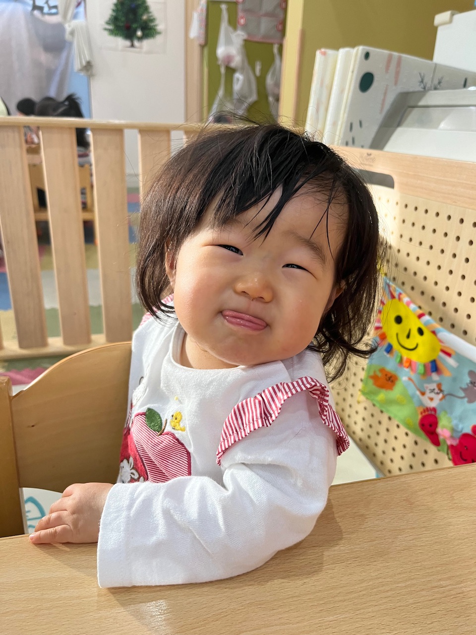保育者と「美味しいねー」と微笑み、楽しそうに過ごしています😋