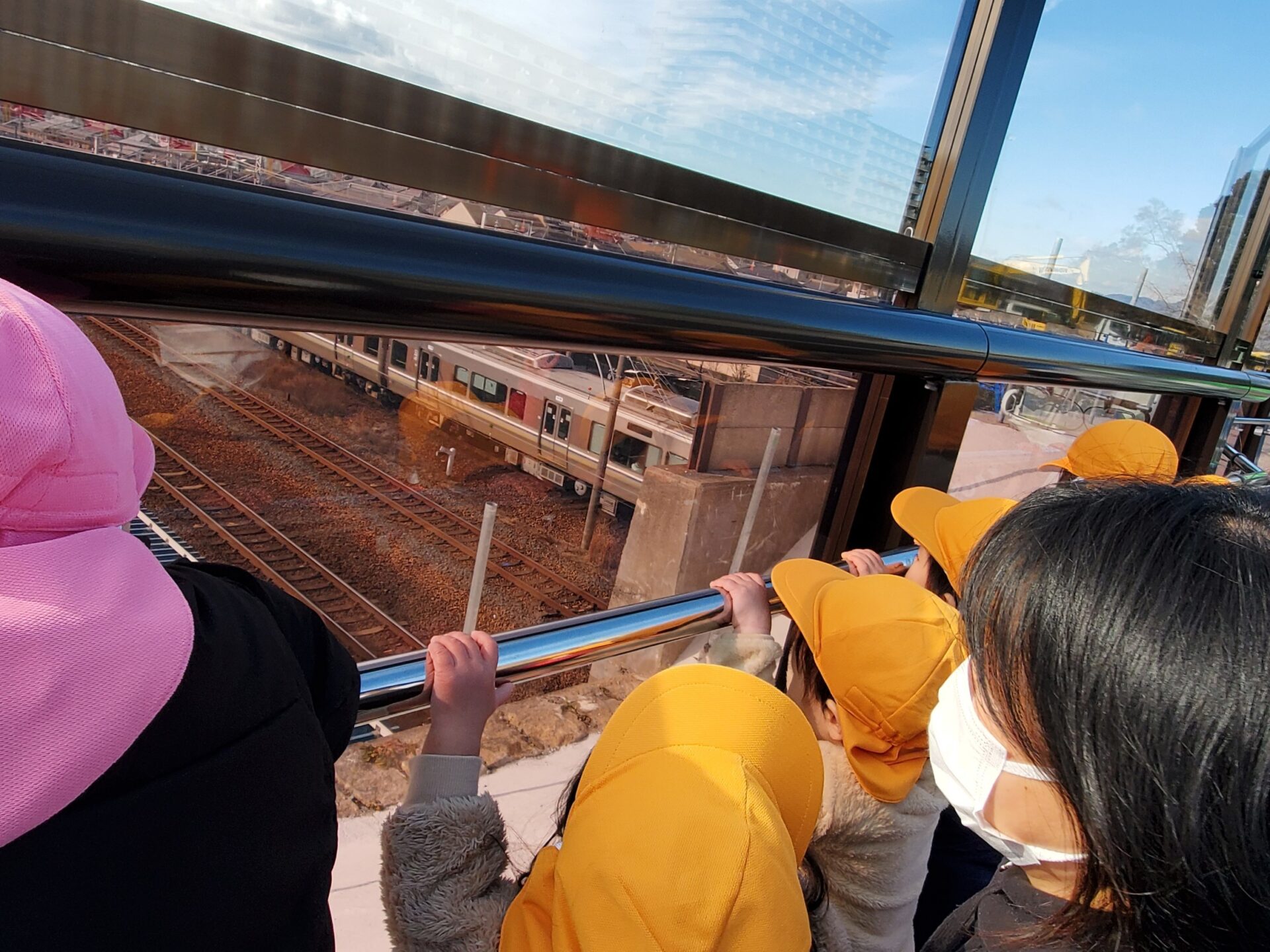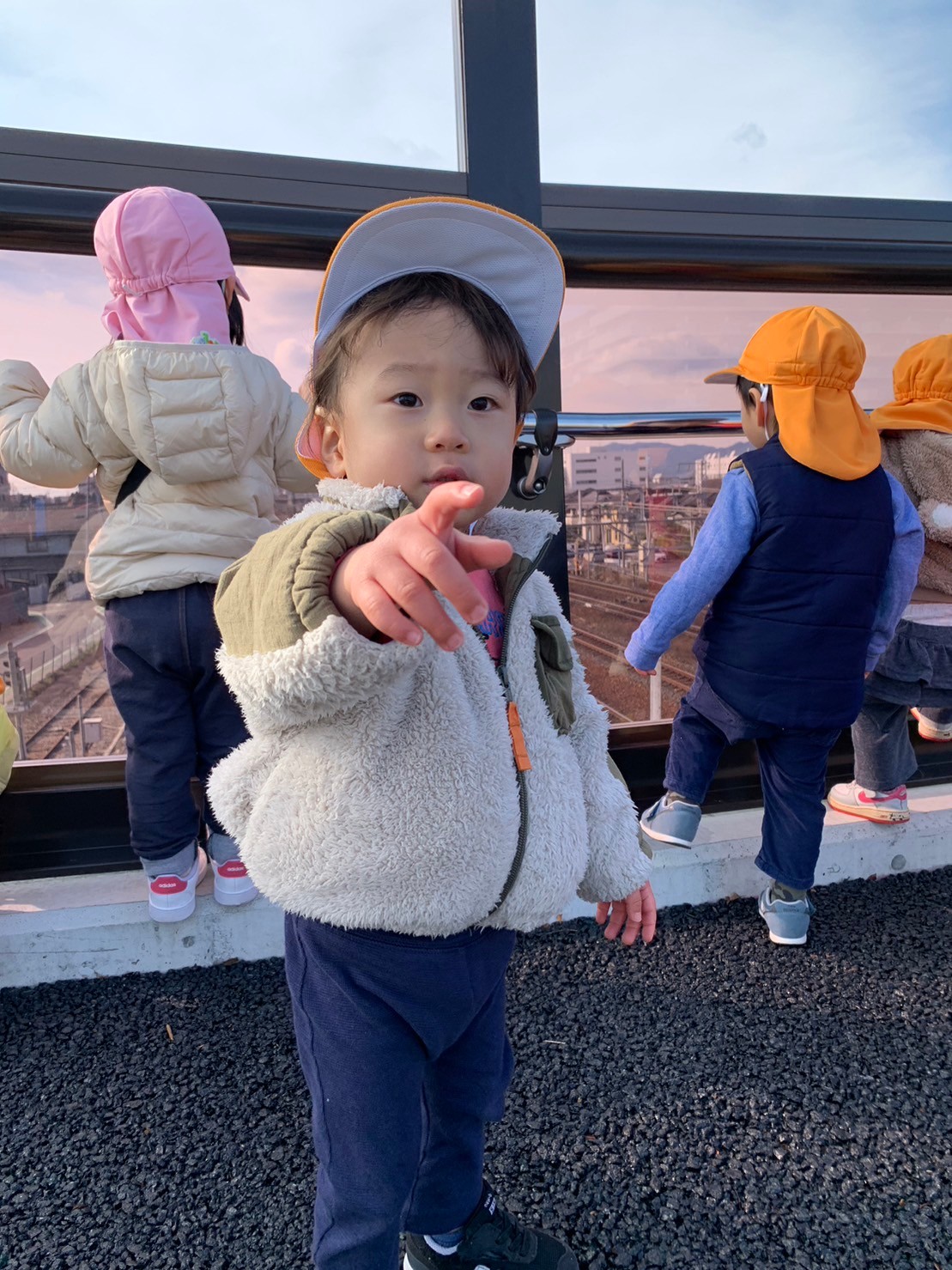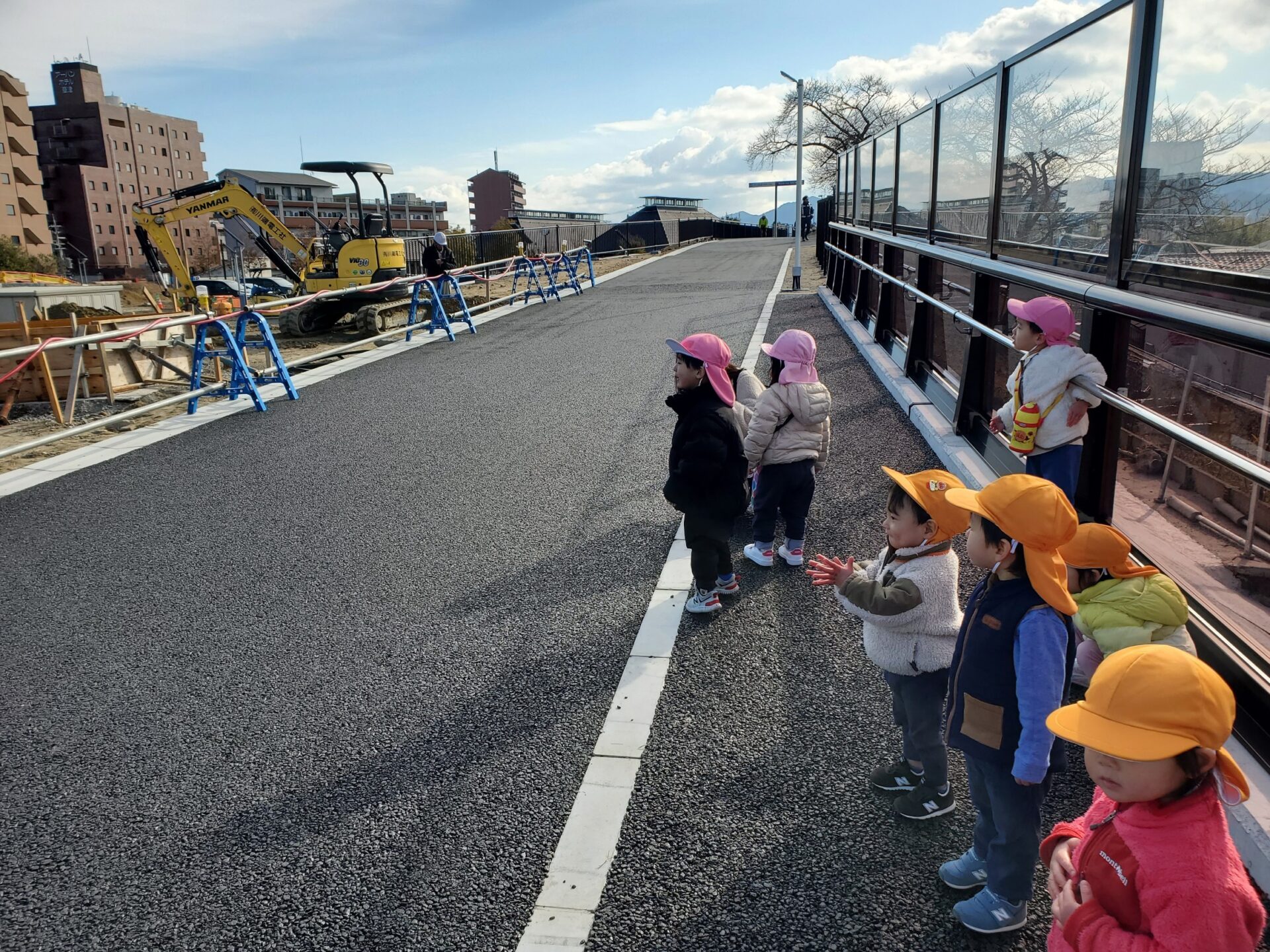 キンっと冷えた青空の下で、はたらく車や電車をみて、冬のお散歩を楽しむ子どもたちでした😌