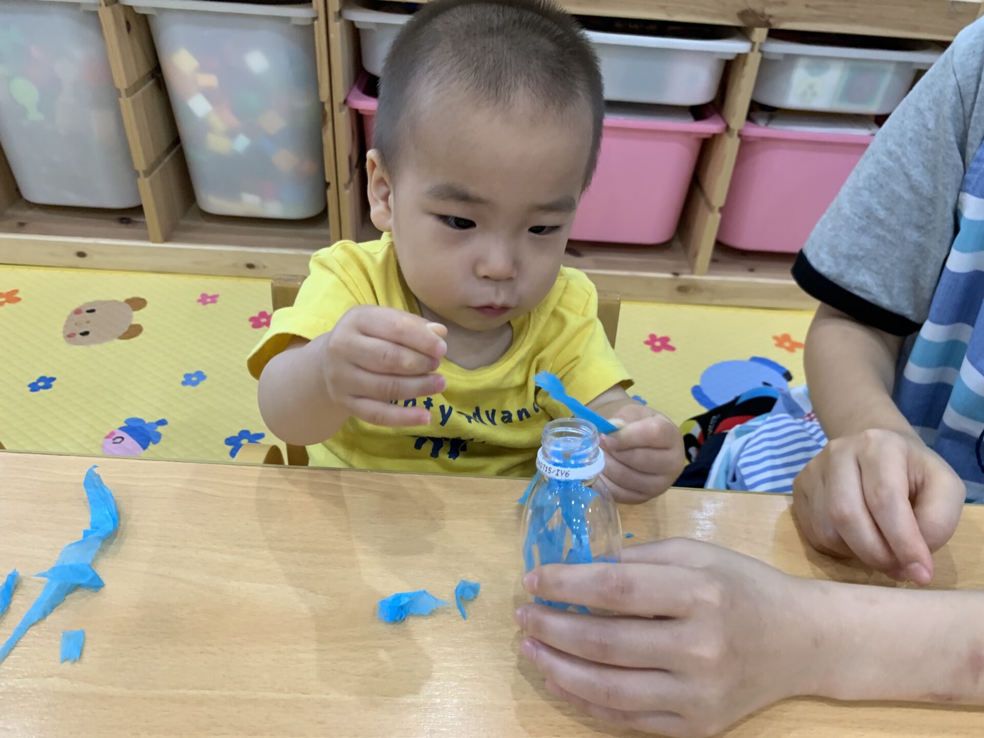 ちぎった花紙が全部入るまで、器用に指先を使いながら、夢中になって入れていました✨