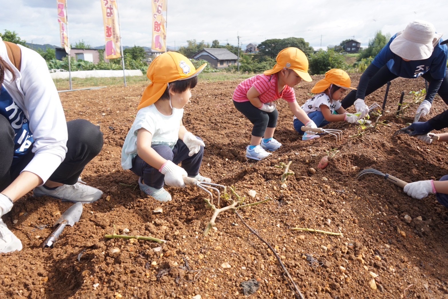 アグリパーク竜王に着くと、軍手をはめて早速芋掘りの始まりです💪
