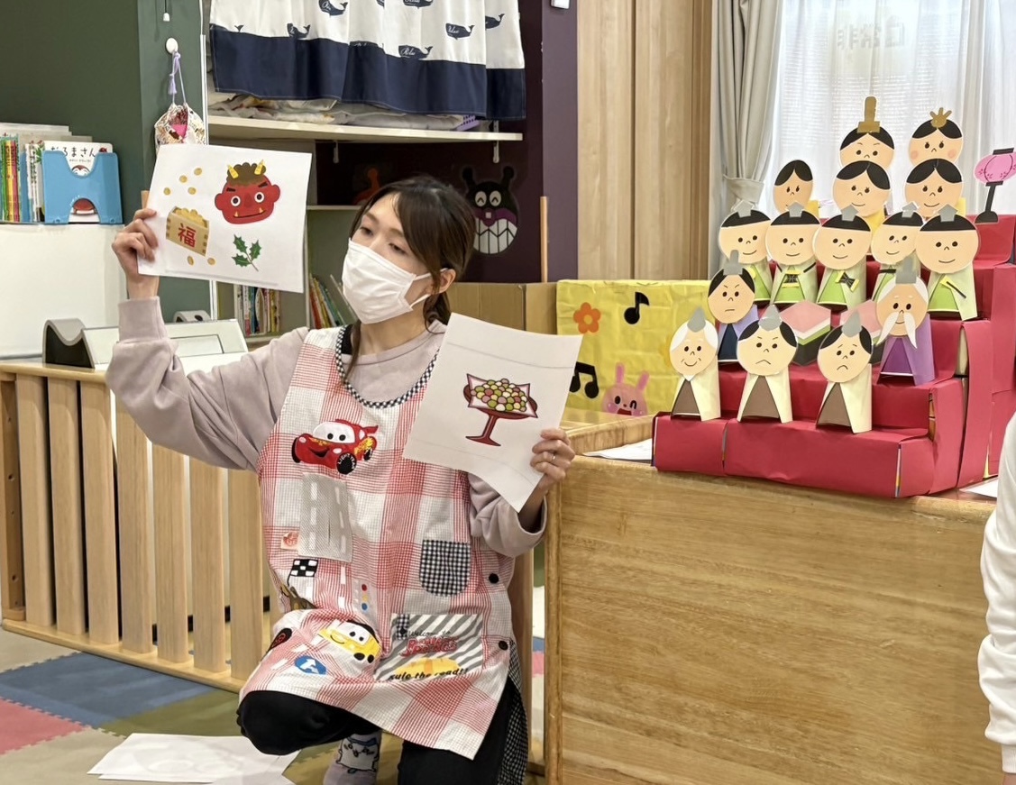 ひなあられのイラストを指差ししたり、「はーい!!」と手を挙げたり、元気よくこたえてくれる子どもたちでした☺️