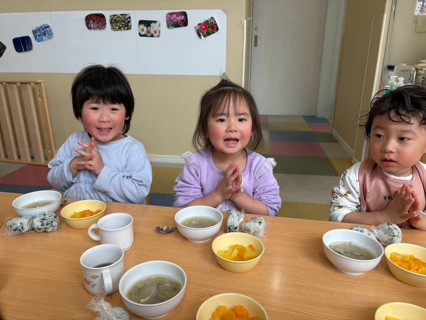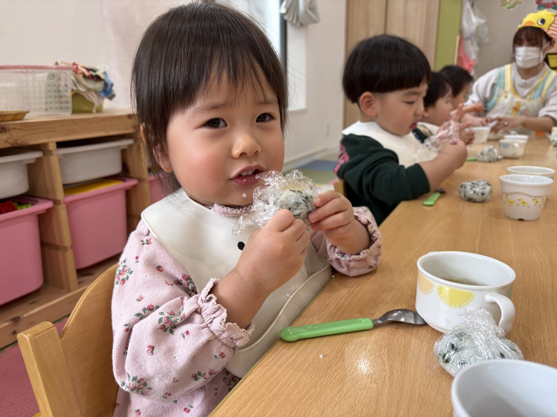 いつものメニューと違いましたが「おにぎり美味しいね」と言ってパクパク食べていましたよ。