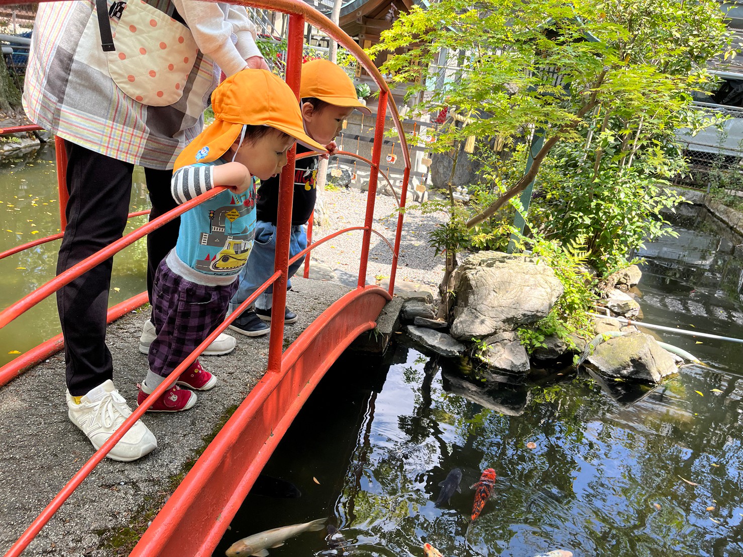 最後は、池の鯉を見に行きました👀
