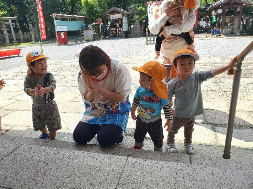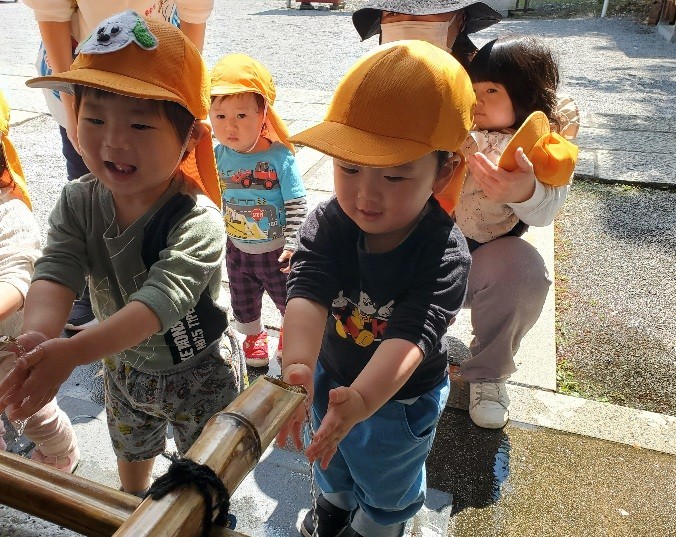 その他にも木の実や砂利を触ったり、境内に流れる雅楽を聞いたり、存分に神社の散策を楽しんだ子どもたちでした✨️