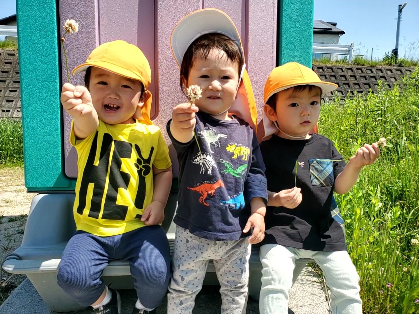 「みてみてーきれいでしょ💗」シロツメクサを見せてくれました。