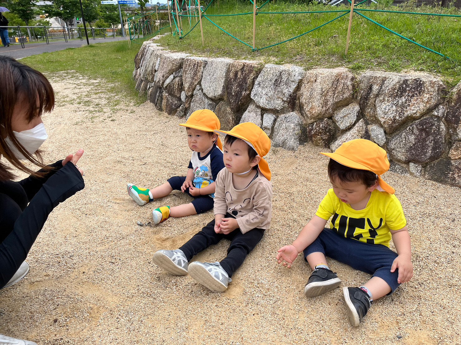 「順番をまもろうね」「先生と一緒にあそぼうね」とお約束のお話を聞いている時、