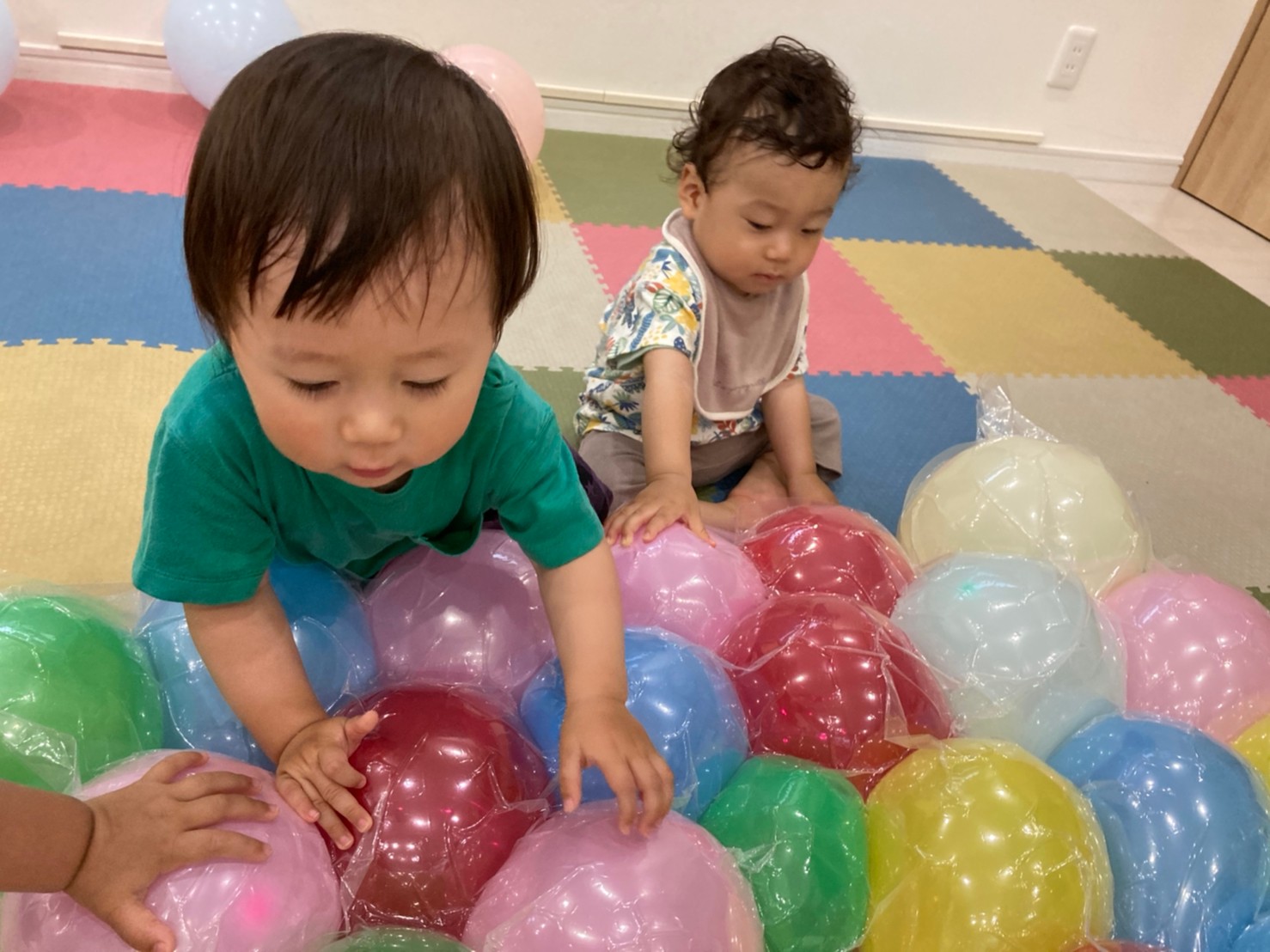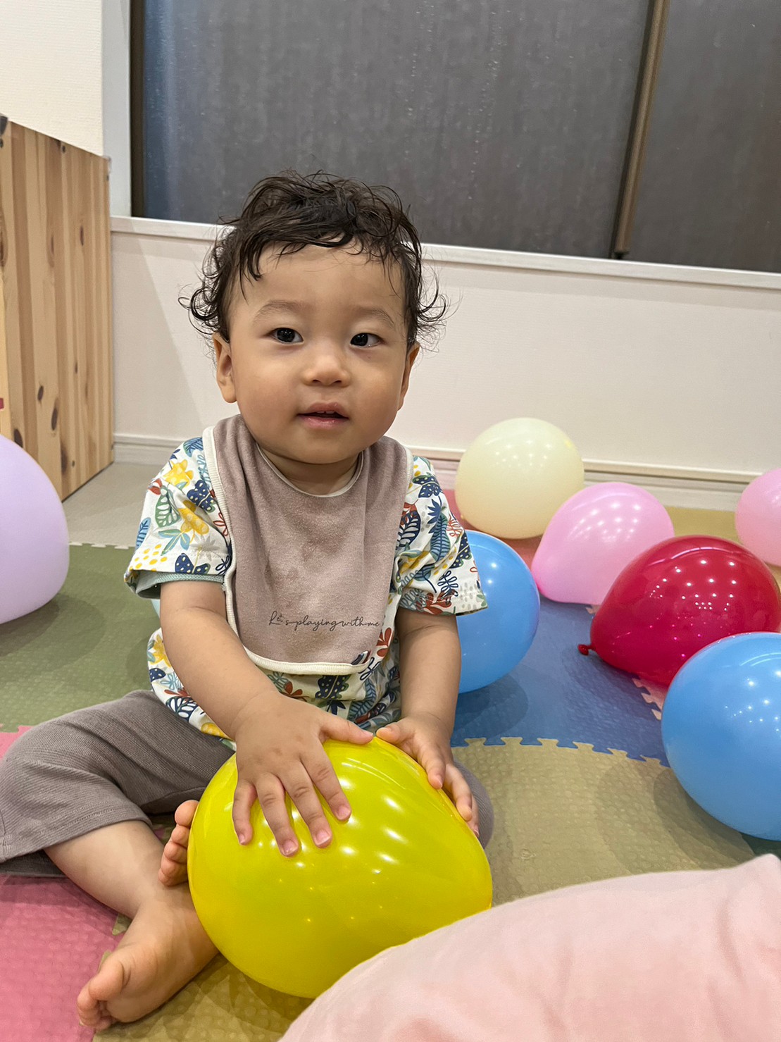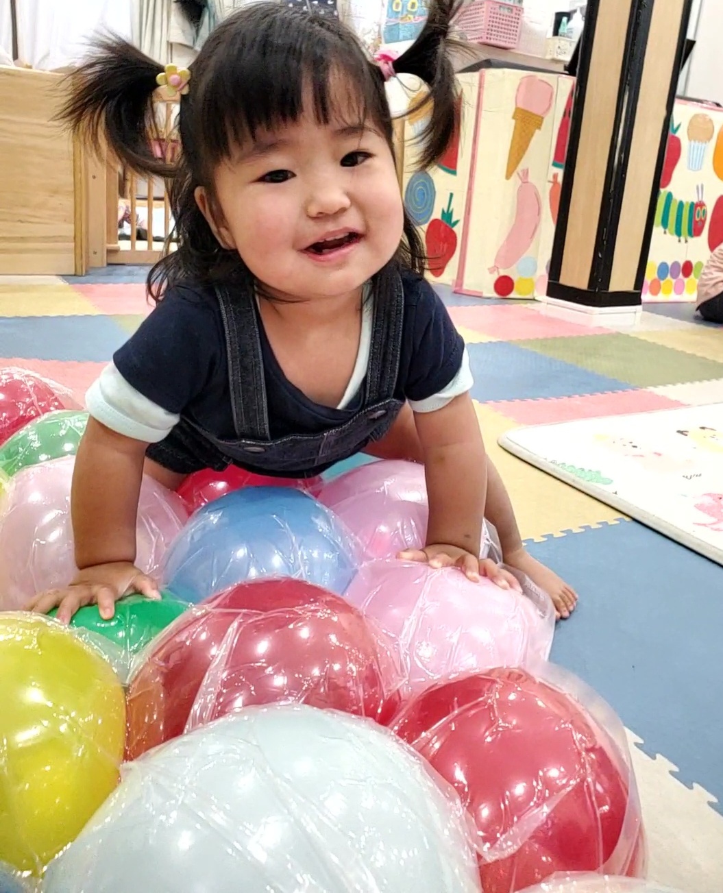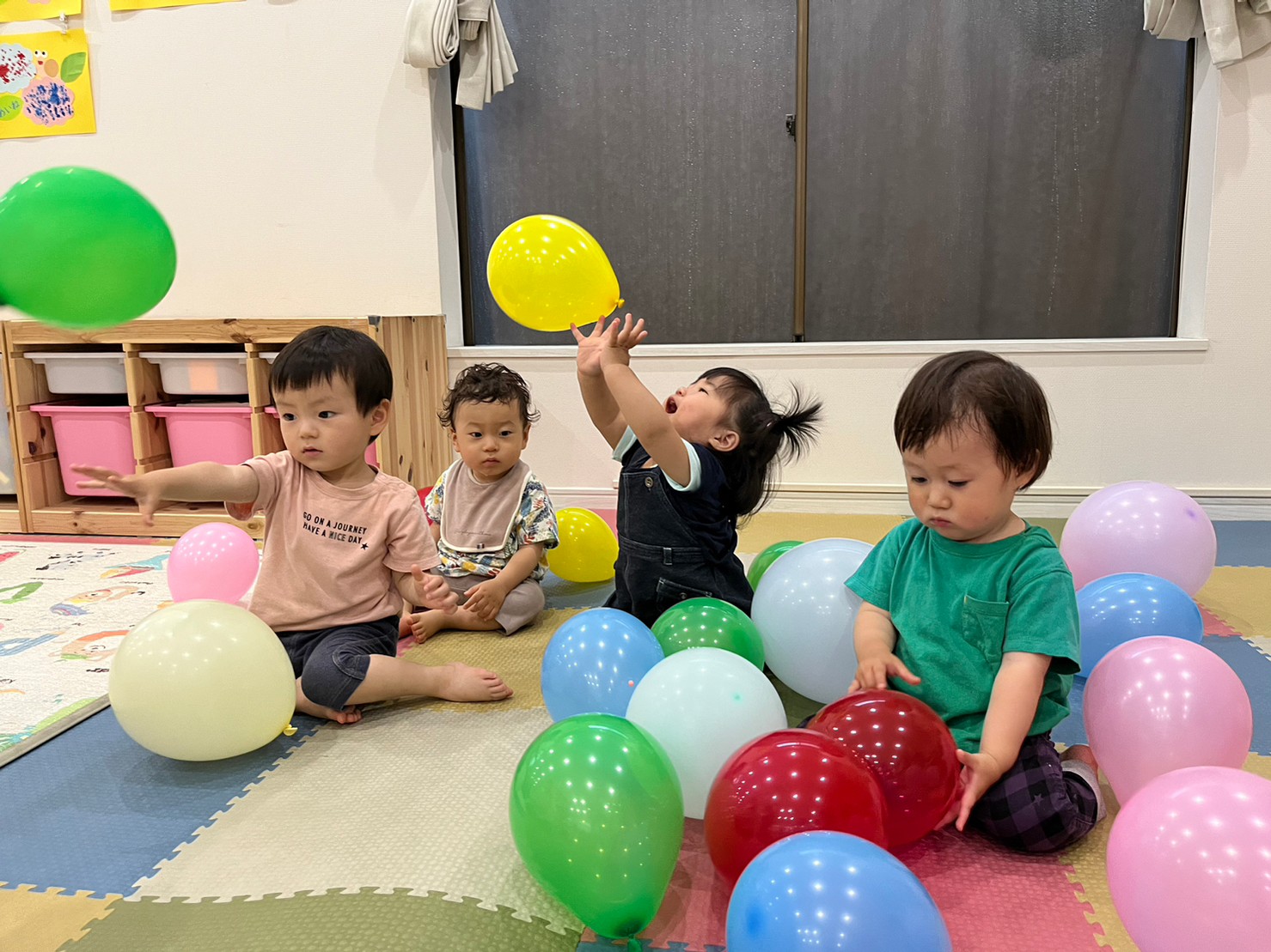 色とりどりの風船に囲まれて🎈(1歳児🐬)