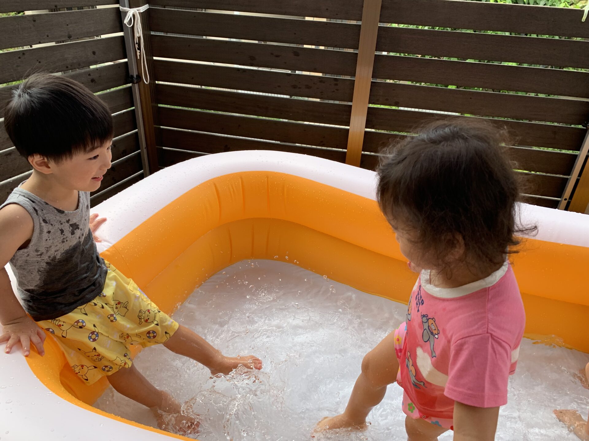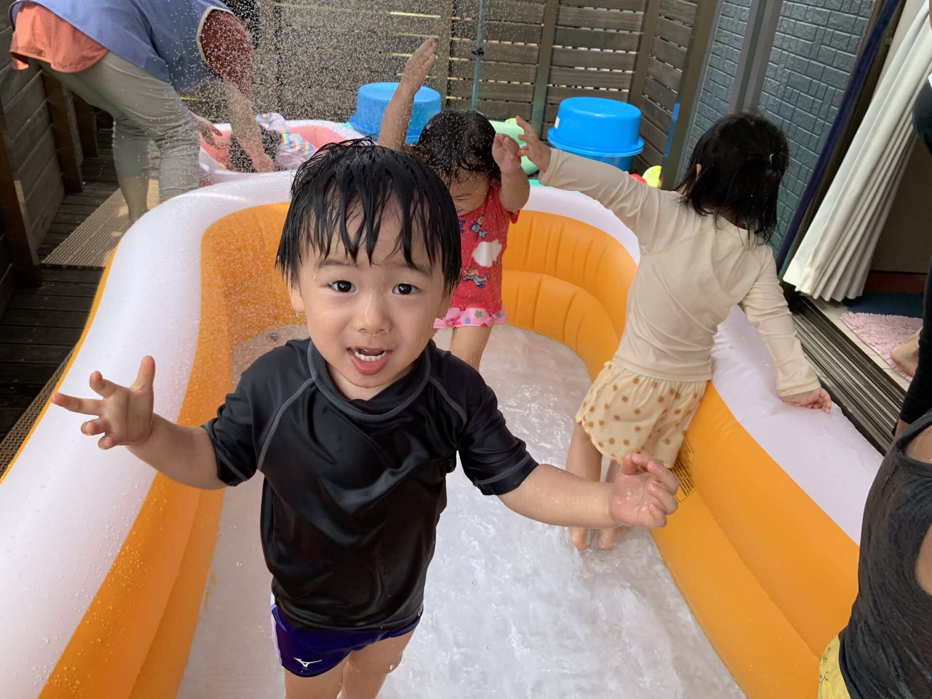 プールの中で、手や足をバタバタさせて、水しぶきを浴びることを喜ぶお友だちもいました😆