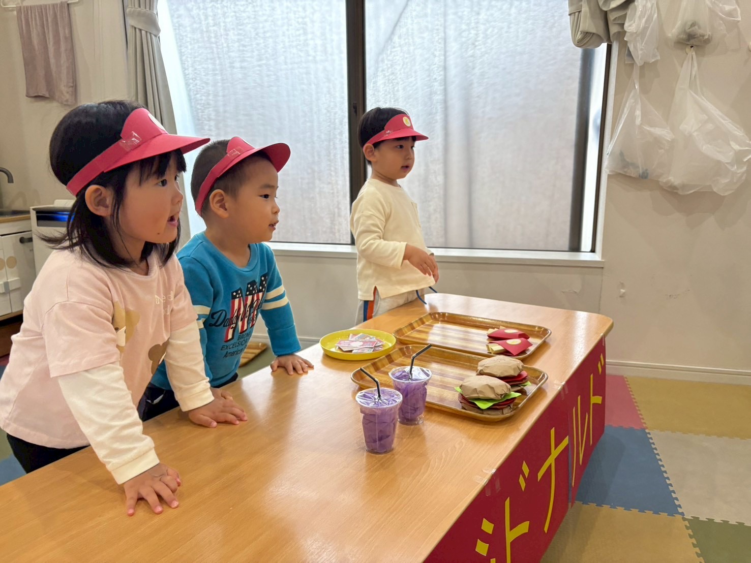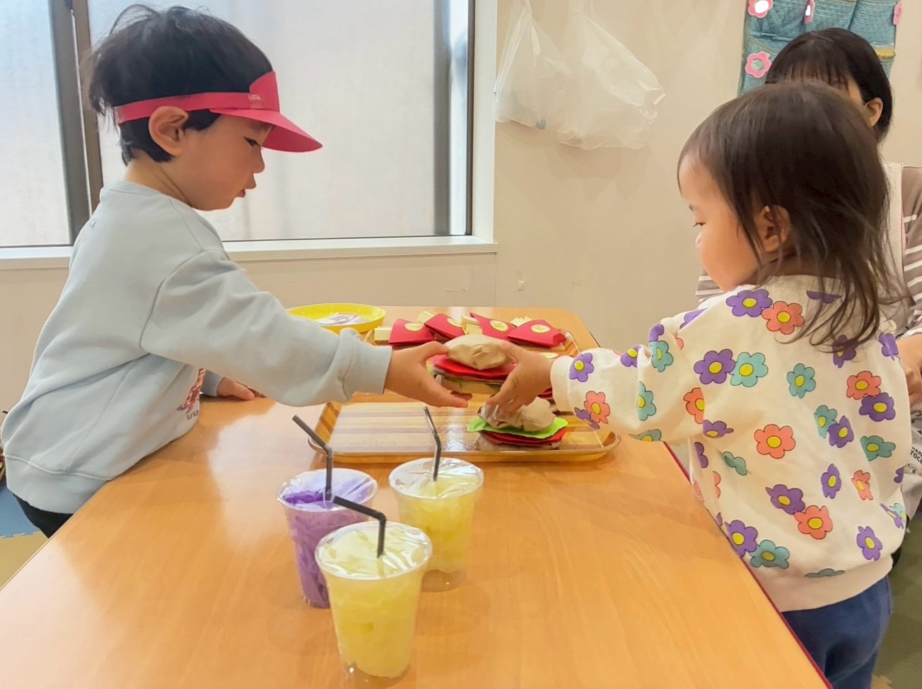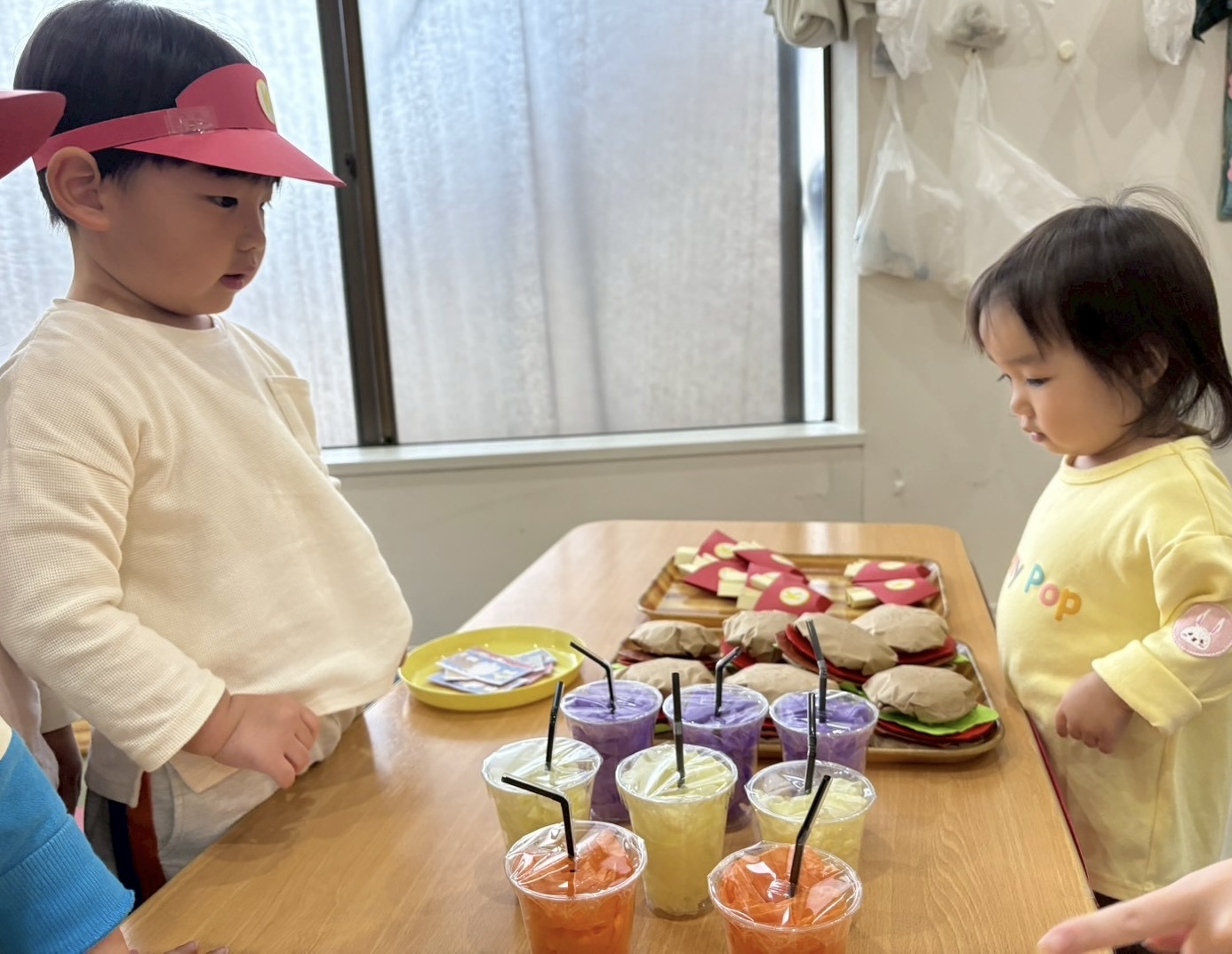 くじら組(2歳児)は、ハンバーガー、ポテト、ジュースのセットです🍔