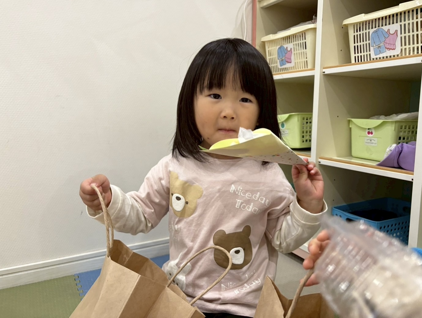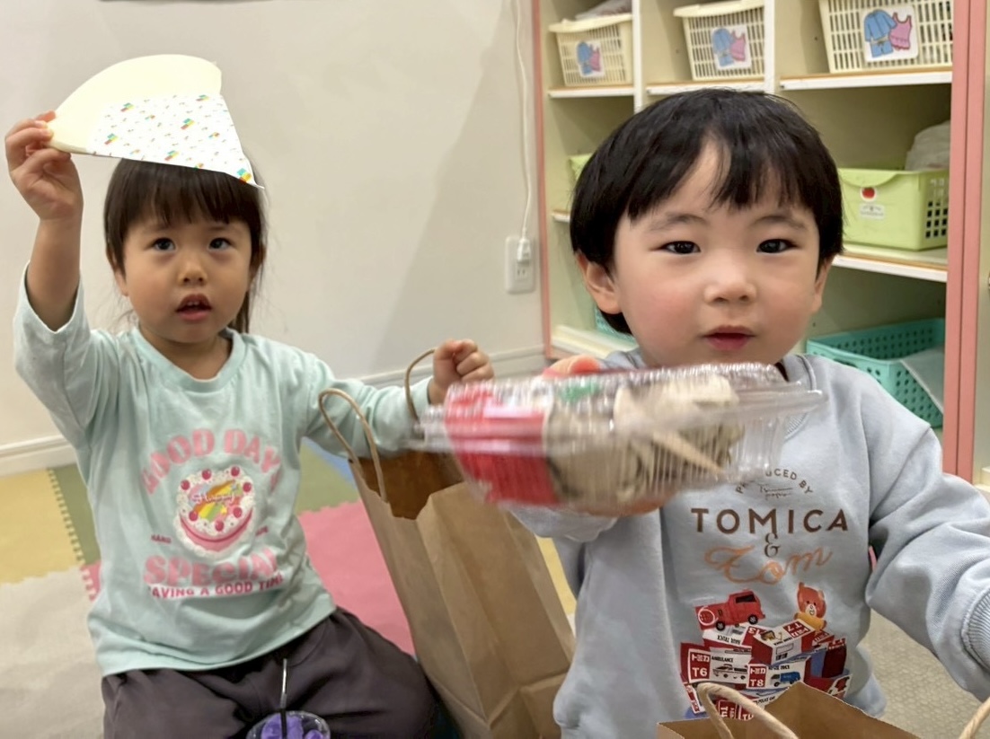 お買い物が終わり、「お店屋さんごっこ、楽しかった?」と聞くと、「うん、楽しかった!」と嬉しそうに、話していた子どもたちでした🎶