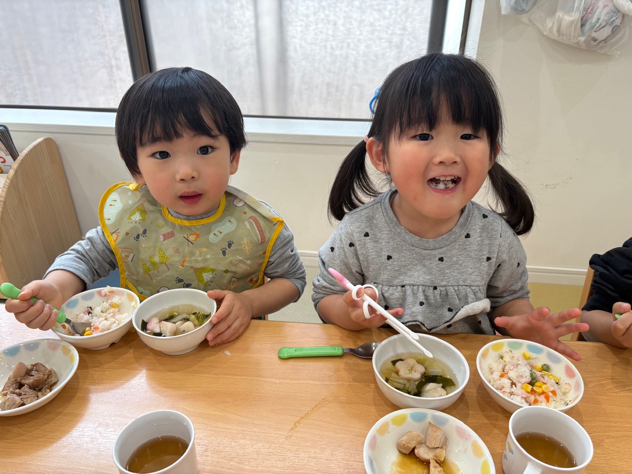 普段とは違う給食をお友達と一緒に食べて楽しむ子どもたちでした。😆